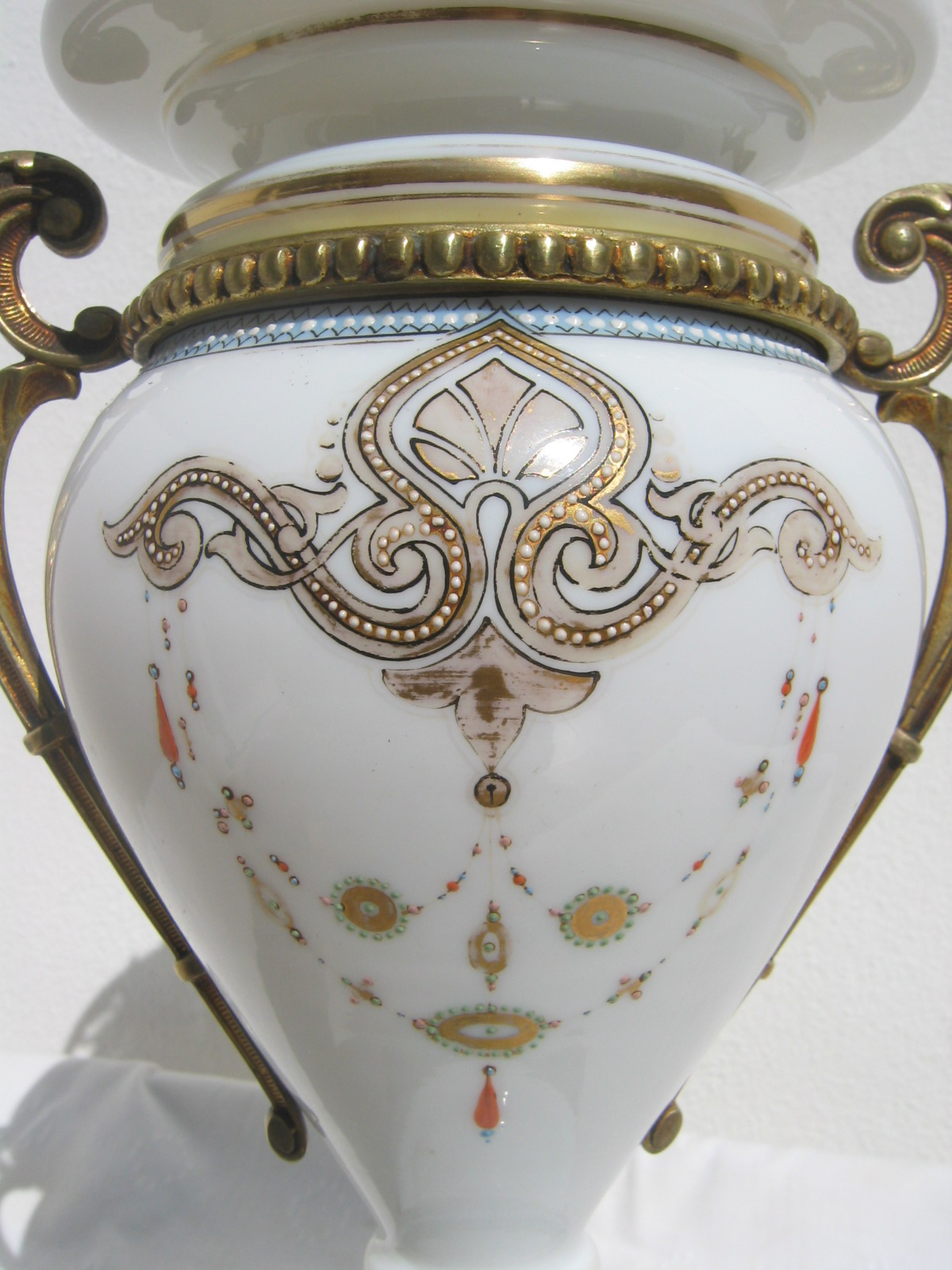 da jarra termina virola aos gomos e duas asas laterais em bronze dourado.