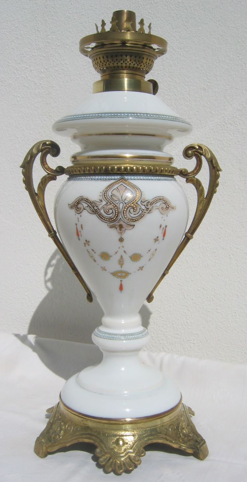 candeeiro foi fabricado entre 1865 a 1880. As estilizações, as formas, a pintura